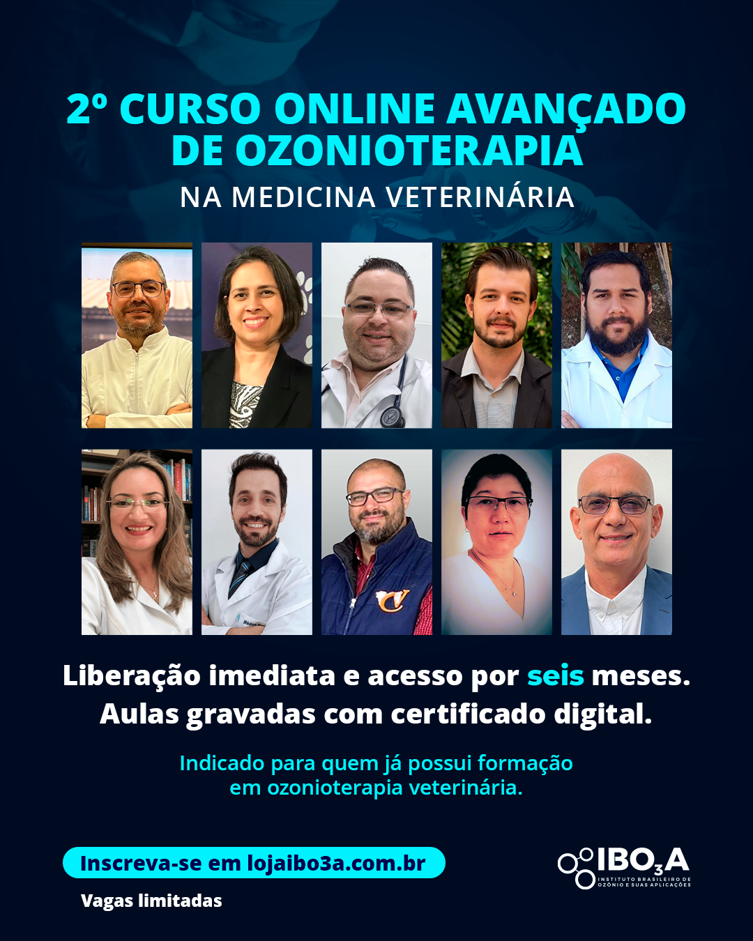 O curso avançado de Ozonioterapia foi desenvolvido pelo Instituto IBO3A com o apoio e conhecimento de 10 professores médicos veterinários, com a intenção de difundir conhecimentos mais a fundo, para profissionais da área que já atuam com a prática da ozonioterapia.