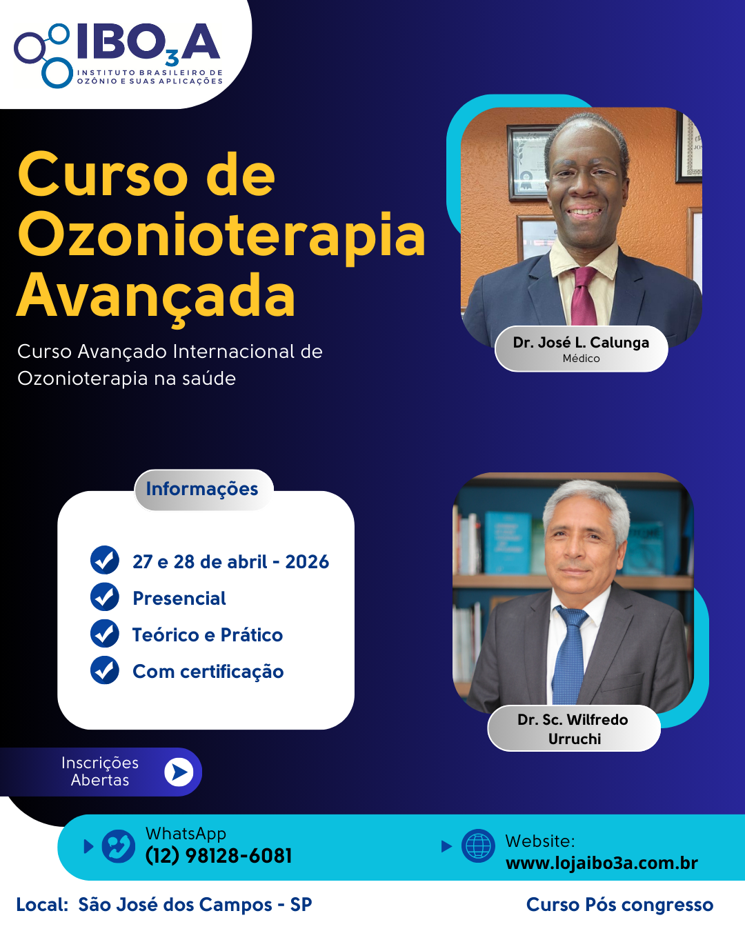 Na compra do curso Avançado você garante 50% de desconto para participar do maior congresso de Ozonioterapia do Brasil: https://7encontro.ibo3a.com.br/